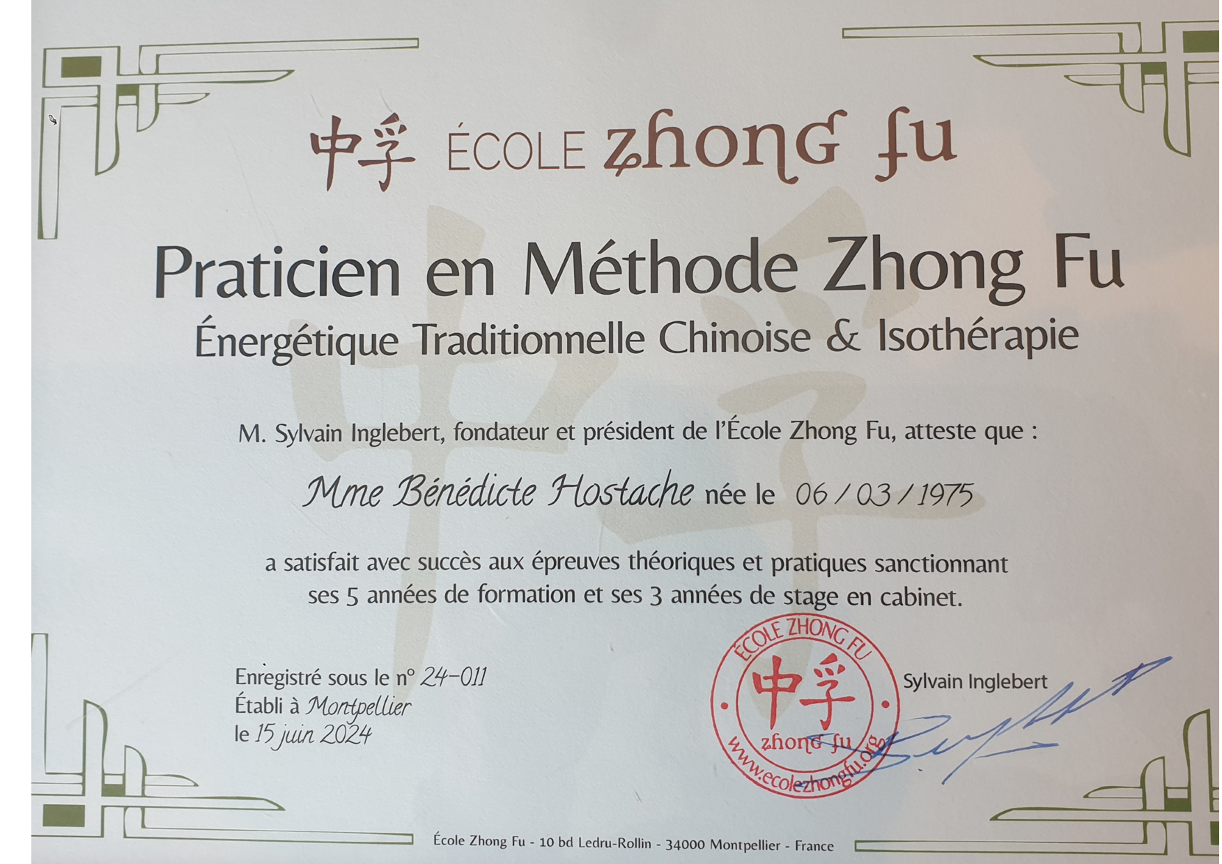 j ai découvert l’énergétique chinoise comme patiente dans un cabinet de Paris puis Bruxelles dés 2015, ou j’ai pu appréhender l efficacité de cette méthode. Ces deux thérapeutes, tous les deux issus de l ‘école Zhong fu m’ont convaincu de rejoindre cette formation. tout d’abord à Bruxelles pour la première année, puis Montpelliers. Aujourd’hui diplomée j ai ouvert mon cabinet en septembre 2023 à la Bourboule.